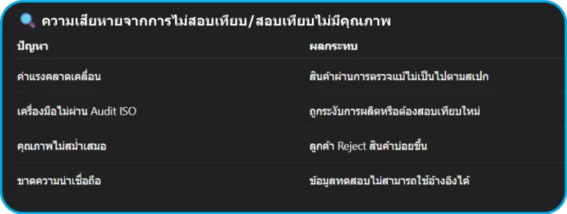 มาตรฐานคุณภาพ เช่น ISO 9001, ISO/IEC 17025, หรือ GMP กำหนดให้เครื่องมือวัดทุกชนิดต้องผ่านการสอบเทียบตามรอบระยะเวลา